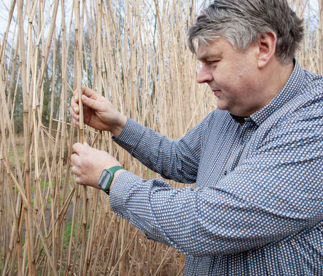 De reeën maken zich uit de voeten als boer Ric van Zee op zijn immense land in Heukelum richting het olifantsgras loopt. Biodiversiteit bevorderen is zijn missie: hij koestert de hazen, fazanten, roofvogels en insecten die op zijn land te gast zijn. Daarom begon hij een paar jaar geleden ook met het verbouwen van miscanthus, oftewel olifantsgras. “De beesten houden ervan, het geeft beschutting. Als een haas moet werpen, doet-ie dat liever in de ruigte dan in het open veld, dat snap ik wel.” Om kennis op te doen, reed hij naar Schiphol, waar olifantsgras is ingezaaid om de ganzen weg te houden.