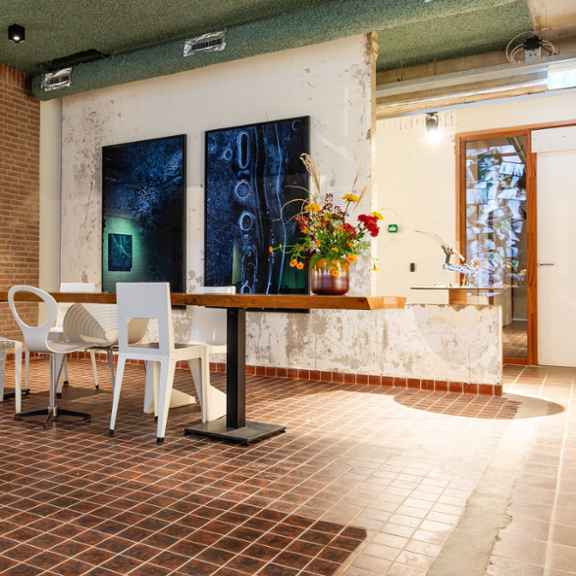 “Maar wat ik echt bijzonder vind, is het team. Toen de openingsdatum dichterbij kwam, dacht niemand dat we het gingen halen. Overal lagen puin en spullen. Maar we hebben het als team gehaald. Iedereen deed mee: koks, kantoormedewerkers, kunstenaars, bouwers. Het werd één grote teambuilding die uitmondde in een climax op het openingsfeest. Het thema was ‘surrealistisch’, omdat het zó onwaarschijnlijk leek dat we dit voor elkaar zouden krijgen. Iedereen kwam verkleed binnen; het werd een ontlading na maanden van hard werken. De Groene Afslag voelde echt van ons allemaal, van het hele team. Het is nog niet af, maar” – Sanne zucht even – “dat is de transitie ook niet.”