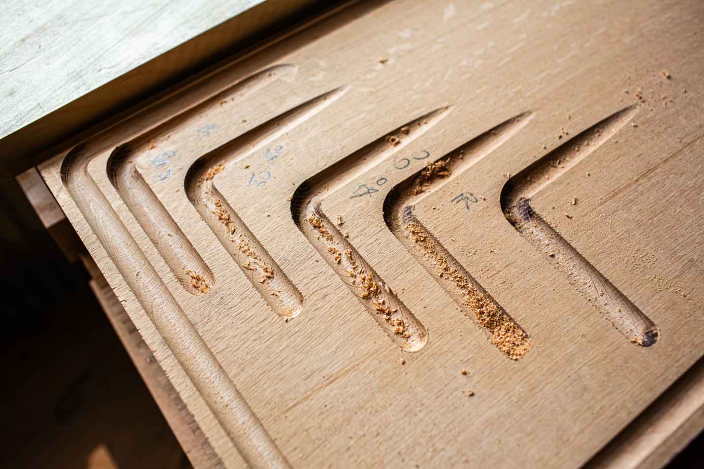 Vanaf dat moment maakte Maarten een steile leercurve door. Zijn onervarenheid vormde geen belemmering. In zijn werkplaats kwamen steeds meer machines, die hij één voor één leerde bedienen. “Een autodidact met een gebrek aan realiteitszin — dat was ik misschien wel een beetje.” Maar hij leerde snel, met vallen en opstaan: machines kopen, leren slijpen, schaven, verlijmen. “Soms lukte iets niet. Dan probeerde ik het net zo lang tot het wel ging.”