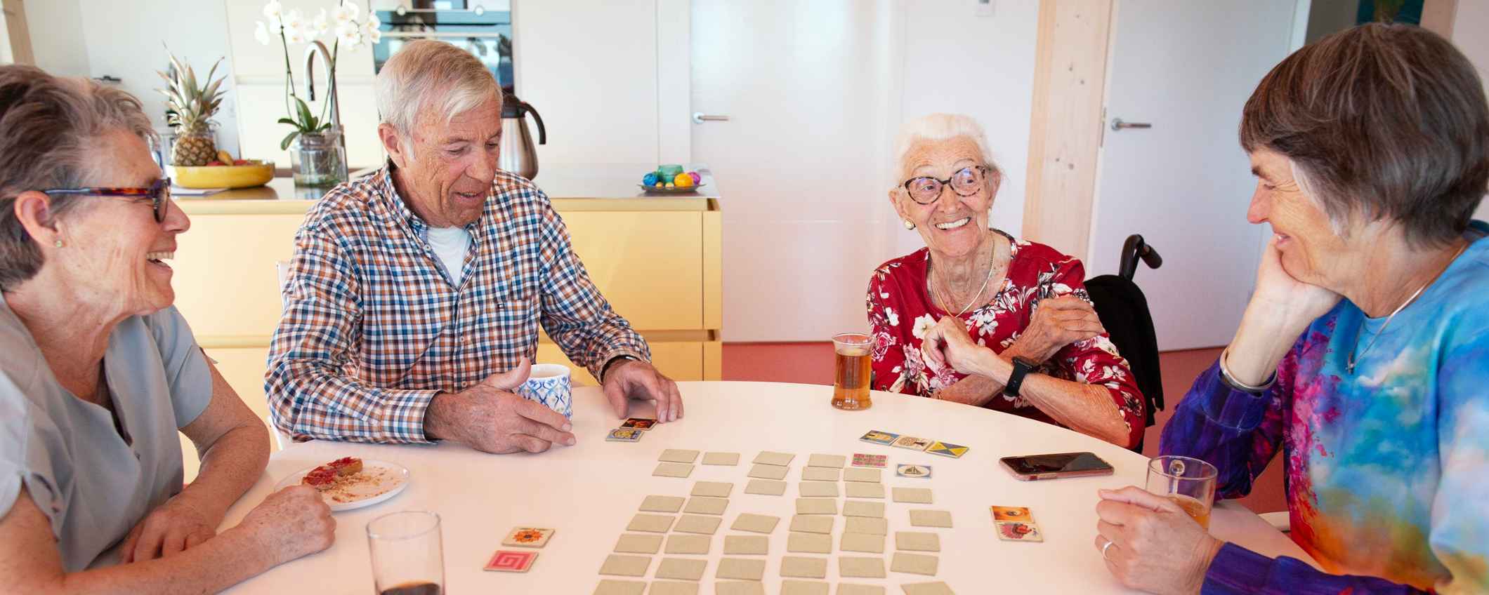 Nel: “Ik heb hier eerst een paar keer gelogeerd, en dat beviel ontzettend goed. Ik vind het fantastisch. Het is fijn dat ik hier niets hoef te doen, in mijn flat moest ik zelf koken, wassen en afstoffen. Hier wordt er goed voor me gezorgd. Ik krijg hulp bij het douchen en aankleden, er wordt voor het huishouden gezorgd en is er altijd gezelschap. Na het eten doen we een spelletje met elkaar en mijn zoon en kleinzonen komen vaak langs.”