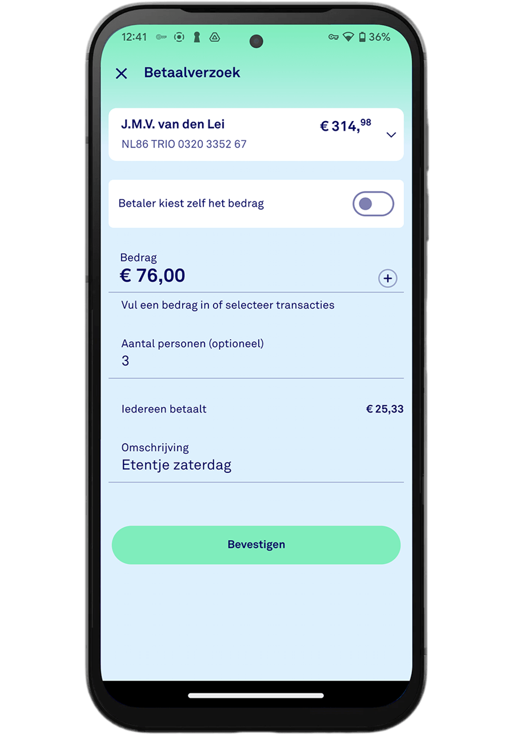 Je verstuurt als particuliere klant een betaalverzoek via de Triodos Mobiel Bankieren app.