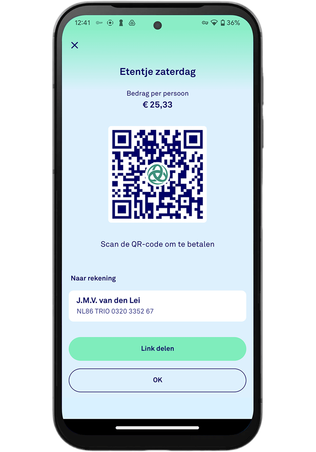 Je krijgt een push-bericht als het betaalverzoek betaald is. Na betaling staat het geld binnen een paar seconden op je rekening.