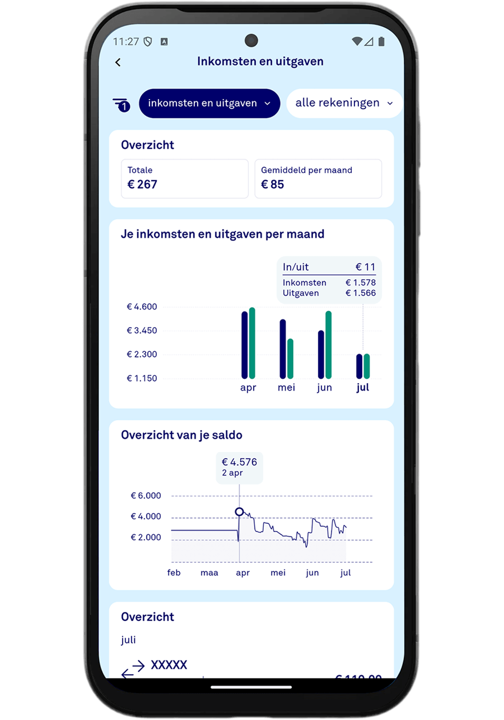 Inzicht is niet beschikbaar voor zakelijke klanten of jongerenrekeningen.