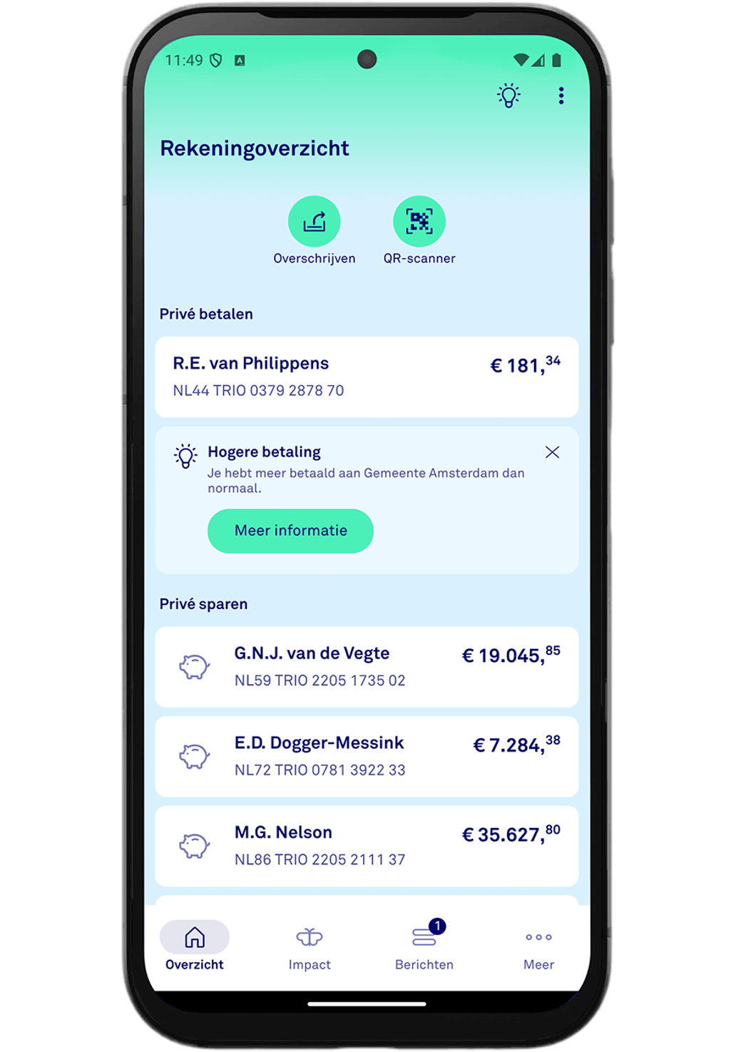 Je vindt Inzicht in de Triodos Mobiel Bankieren app op je telefoon of tablet.